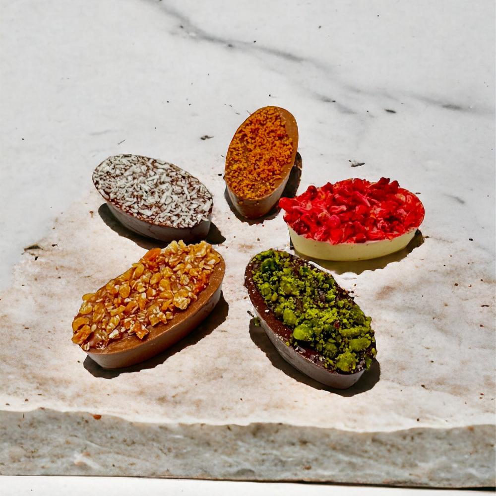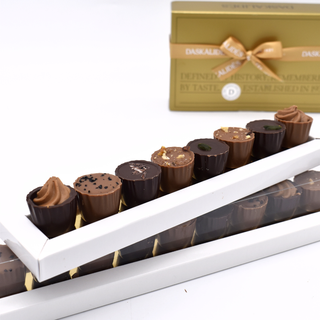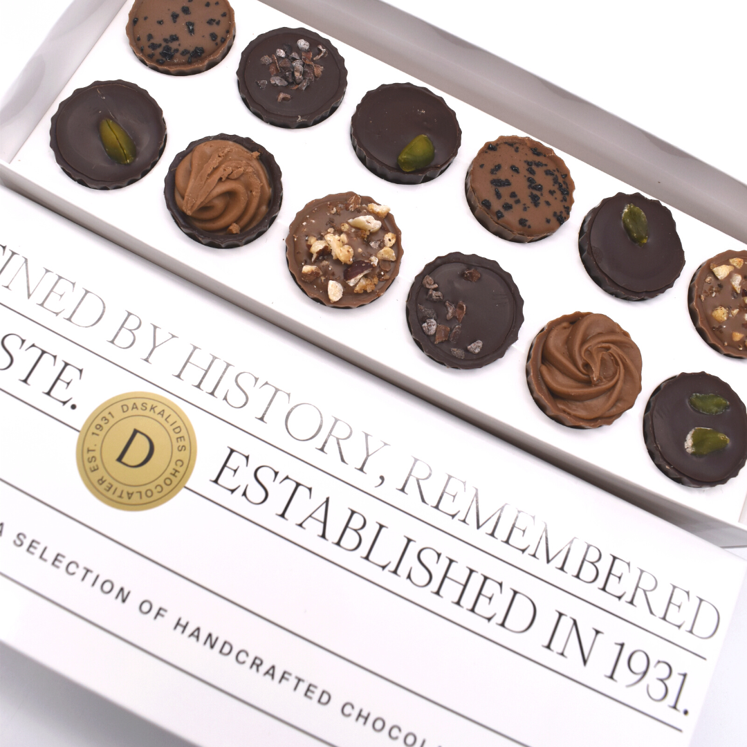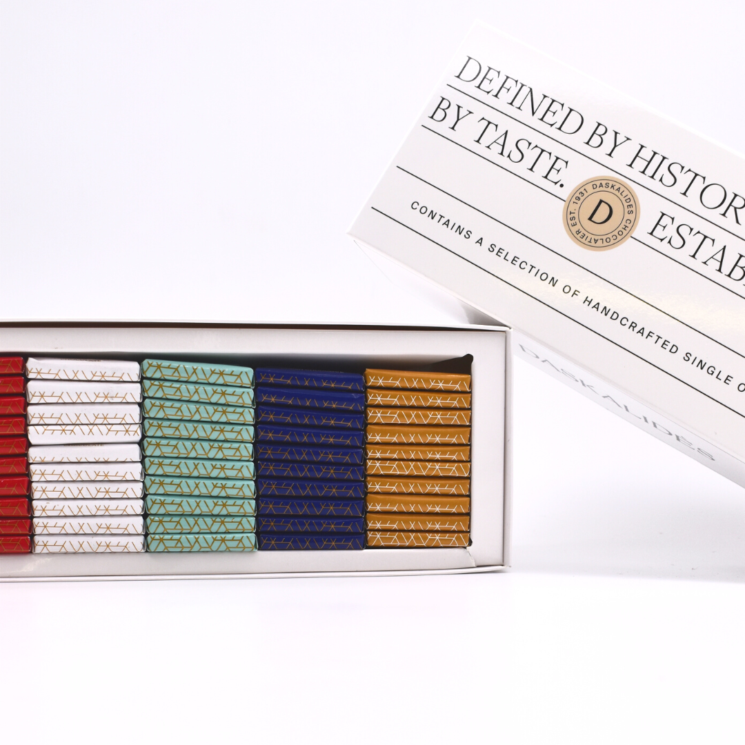 Notre secret? Nous combinons l’artisanat belge avec une touche de passion grecque. Familier et nostalgique, mais aussi un peu surprenant et inattendu. C’est ce qui rend notre chocolat si spécial.